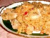 Если для приготовления берется целая курица, то ее нужно разрезать на порционные кусочки. Кусочки курицы помыть, обсушить и обжарить в растительном масле примерно по минуте с каждой стороны.